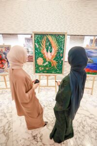 Tədbirdə realistik və abstrak üslubda 30 ədəd əsər nümayiş olunub. Sərgini əks etdirən əsas rəmz isə Simurq quşudur.
