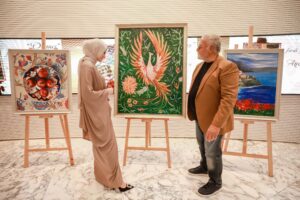 Buradakı hər bir əsər ruhun göstəricisidir və rəsmlərə baxdıqda sanki öz dünyamızla danışırıq. Sərgidəki əsərlərdə gözəlliklə yanaşı ruhani kimlik də öz əksini tapıb”.