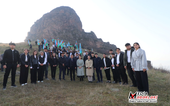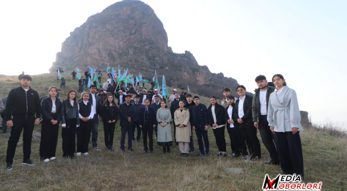 Daha sonra tədbir iştirakçıları üçrəngli Azərbaycan Bayrağı ilə Göyəzən dağının zirvəsi istiqamətinə yürüş edib, yürüşün yekununda qoruğun ekskursiyaçıları tərəfindən tələbələrə ərazidə yerləşən tarixi abidələr, burada aparılan arxeoloji qazıntılar haqqında geniş məlumatlar verilib.