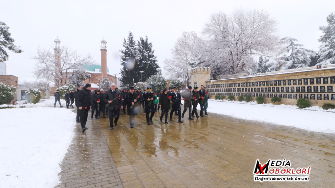 Şəhərin mərkəzində yerləşən Şəhidlər Xiyabanı ziyarət olunub, şəhidlərimizin xatirəsinə ucaldılmış memorial abidə kompleksinin önünə tər qərənfillər düzülüb. Vətən uğrunda canından keçən bütün şəhidlərimizin ruhuna dua oxunub, əziz xatirələri ehtiramla anılıb.
