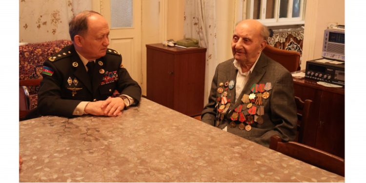 Polkovnik Cəlil Xəlilov 102 yaşlı müharibə veteranı Qaflan Ömərovu ziyarət edib