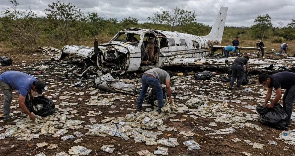 Paraqvayda milyonlarla dollar daşıyan bir təyyarənin qəzaya uğraması bölgədə böyük xaosa səbəb olub. Hadisə yerinə toplaşan insanlar göydən səpələnən pulları toplamaq üçün bir-birini əzməyə başlayıblar.